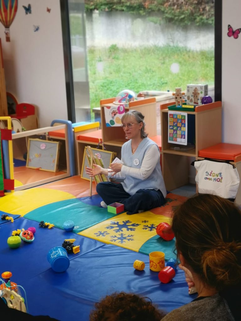 En juin 2018, j’ai suivi deux séances de sensibilisation à la « Communication gestuelle associée à la parole ». J’ai immédiatement adhéré à cette forme de communication. Pouvoir entrer en communication avec les bébés et/ou des enfants, se faire comprendre et surtout les comprendre m’apparaissait comme une évidence dans mon métier.